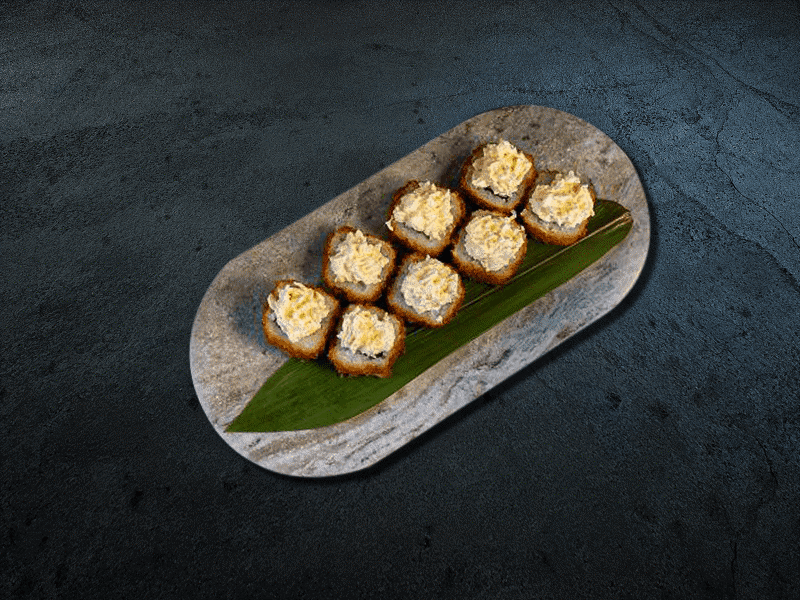 Рис, нори, креветка, творожный сыр, сырный соус 210 гр