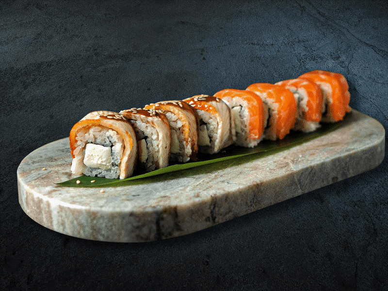 Рис, нори, лосось охлажденный, угорь, творожный сыр, унаги соус, кунжут 230 гр