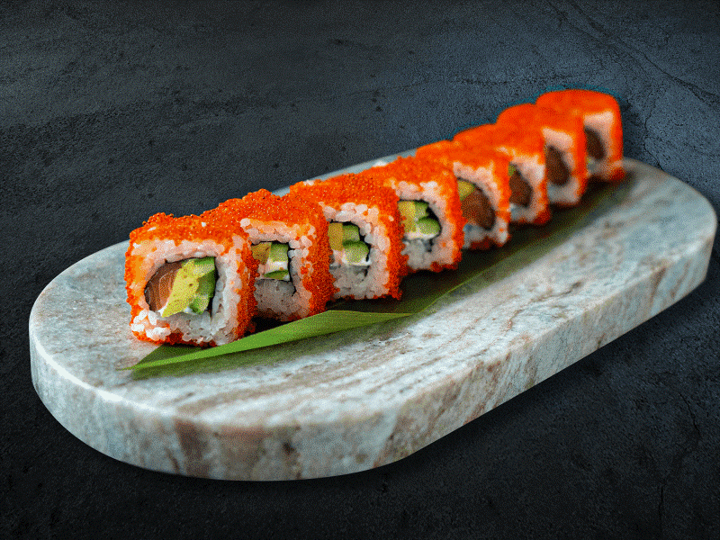 Рис, нори, масаго, лосось охлажденный, огурец, авокадо 210 гр