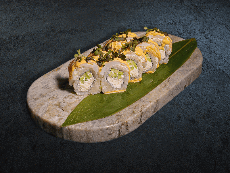 Рис,нори, творожный сыр, огурец, креветка, соус том ям 280 гр