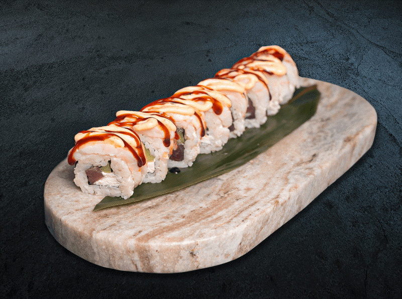 Рис, нори, тунец, киви, креветка, спайс соус, соус унаги 240 гр