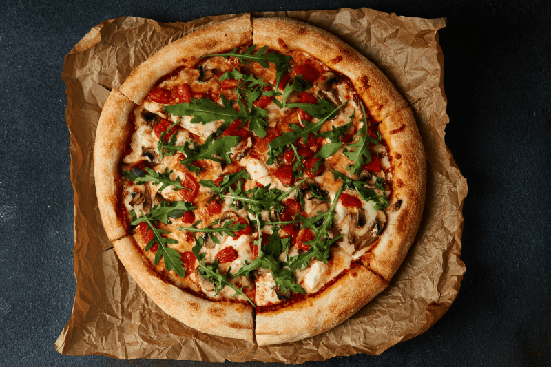 Пицца с бужениной, вялеными томатами и белым соусом барбекю
