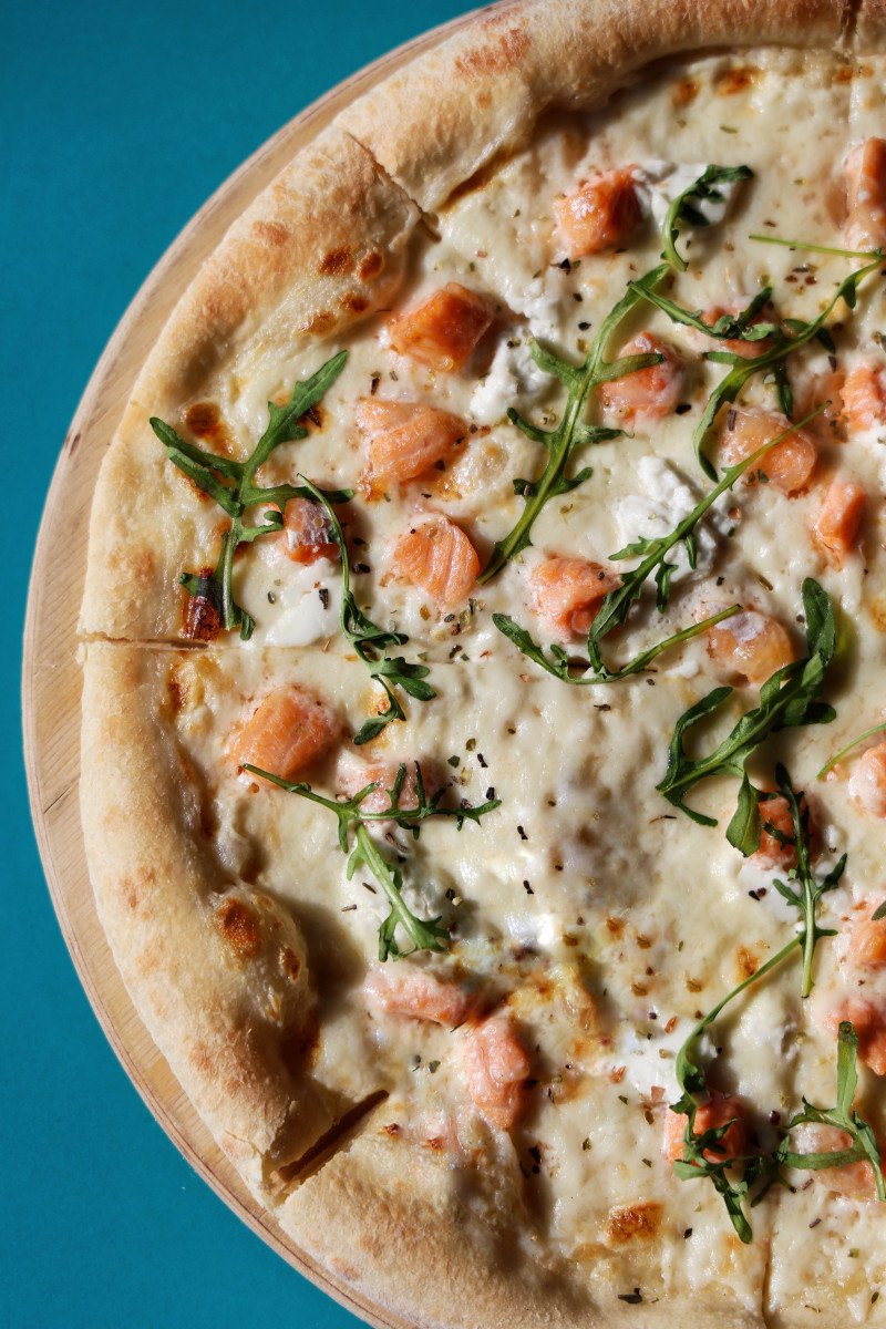 Пицца с форелью и рукколой