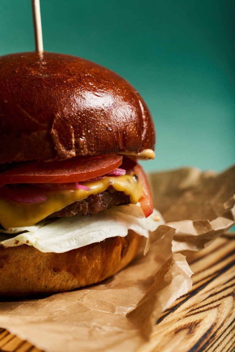 Бургер БИФ — сытный и сочный бургер с насыщенным мясным вкусом. Мягкая булочка, нежная буженина, тягучий чеддер и свежие овощи создают гармоничное сочетание текстур и вкусов. Соус BBQ и фирменный бургер-соус добавляют лёгкую сладко-копчёную нотку и делают бургер особенно аппетитным. Состав: булочка, буженина, сыр чеддер, айсберг, помидор, маринованный лук, соус BBQ, бургер-соус.