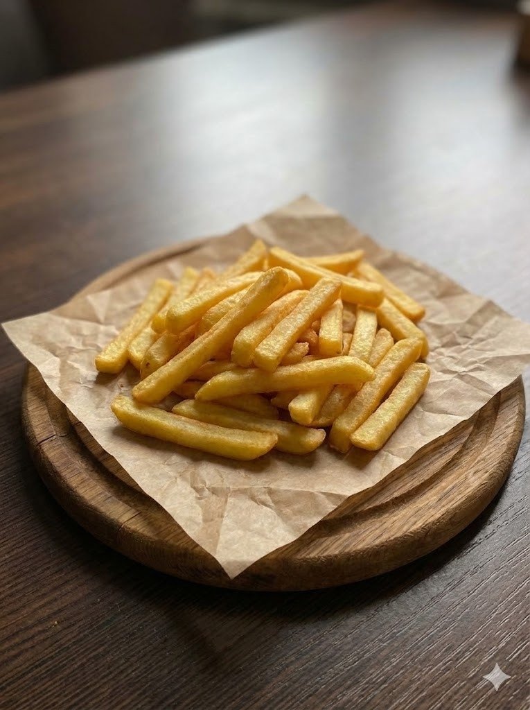 Картофель фри — золотистые хрустящие палочки картофеля с мягкой серединой. Подаётся горячим, с аппетитной корочкой и классическим вкусом, который любят и дети, и взрослые. Отличный вариант для перекуса или как дополнение к блюдам.