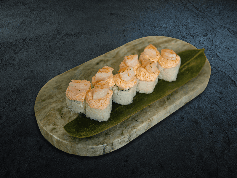 Креветка, Лава соус:креметте, майонез, тобико, креветка, Сыр Креметте, авокадо